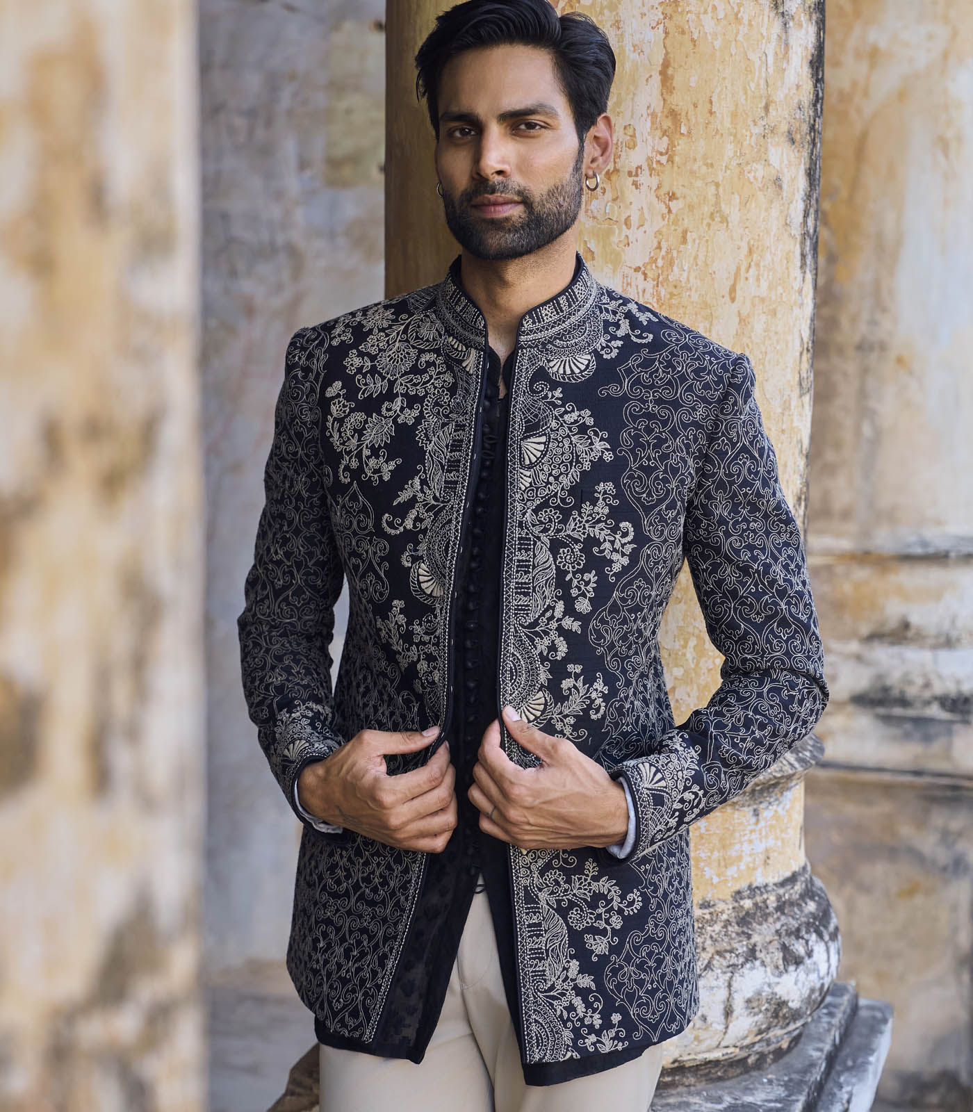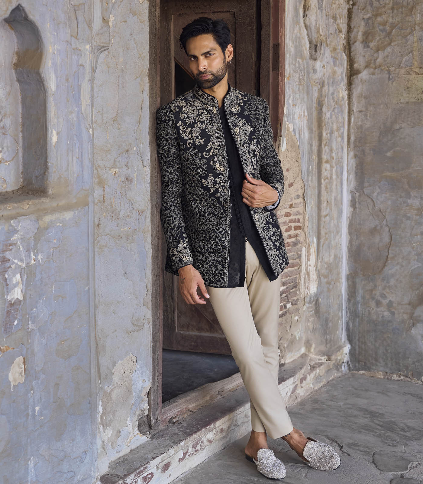 Black raw silk bandhgala