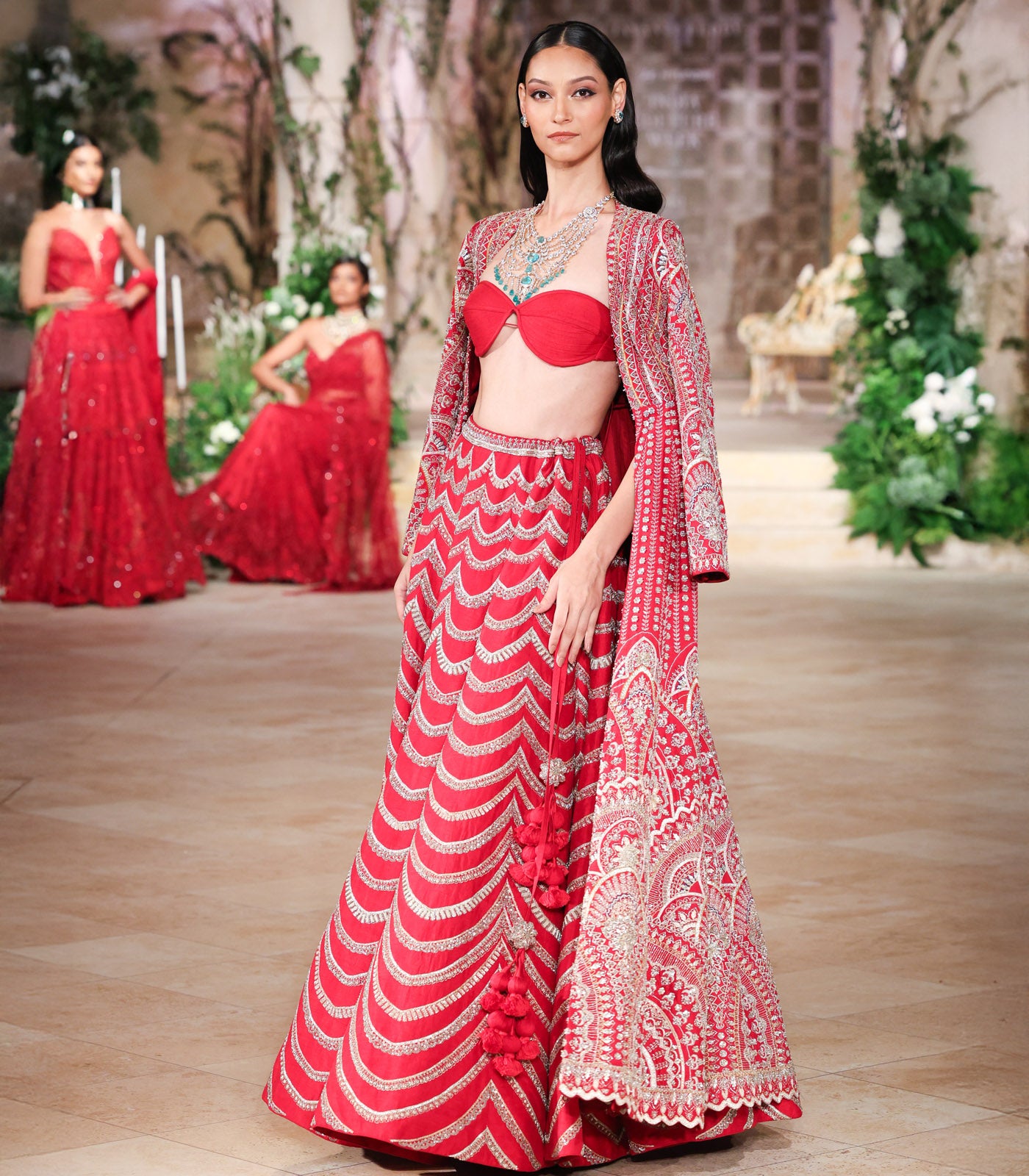 No. of components: 3 (Lehenga + Jacket + Bustier)